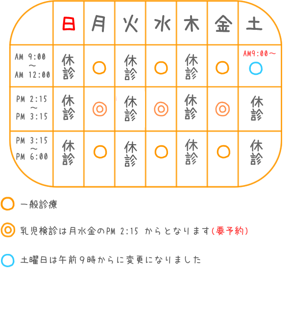 月・水・金曜日の乳幼児健康診断